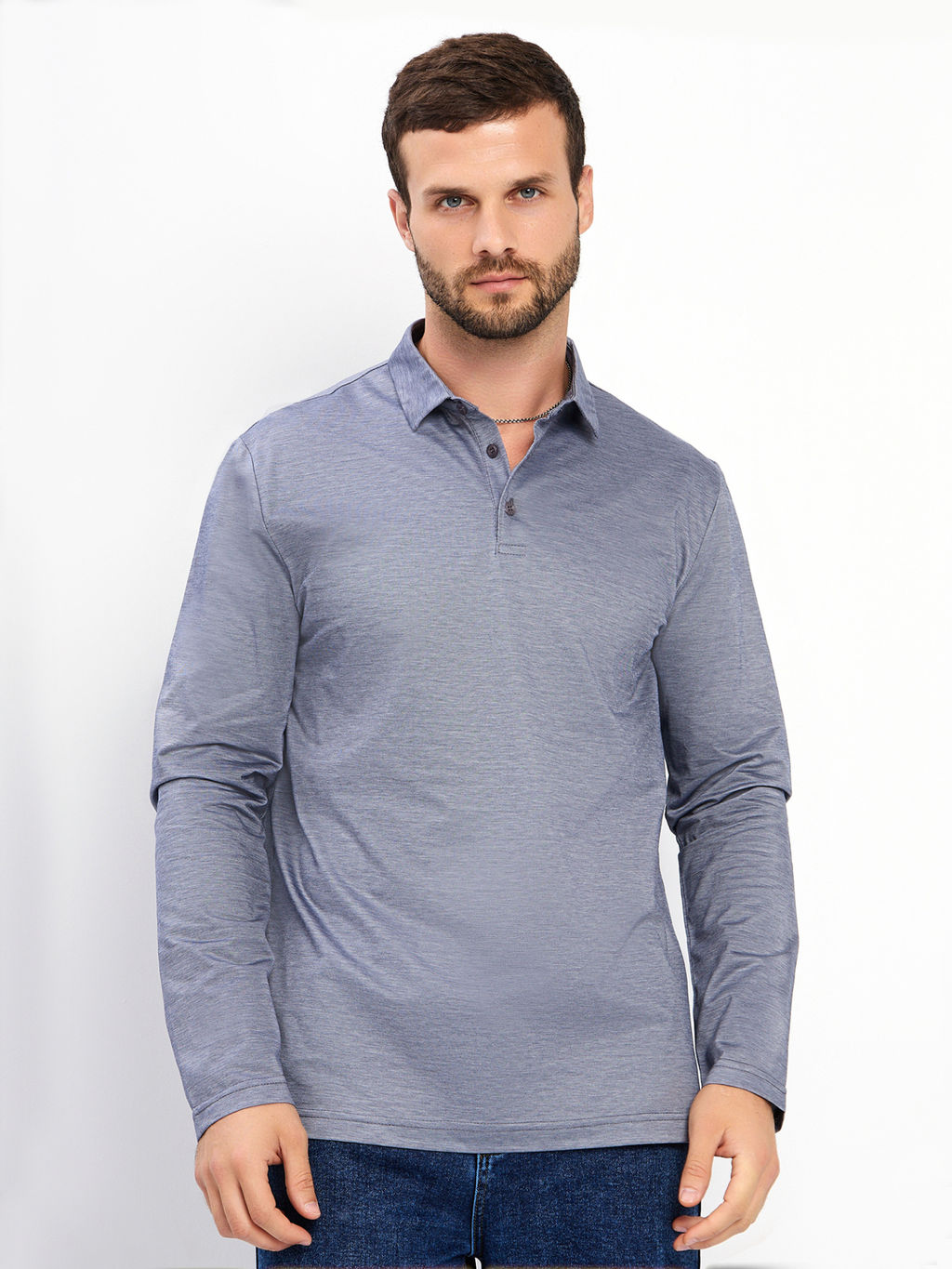 Джемпер мужской с воротником поло GREG G155-PM4-LT1636 (сине-серый)
