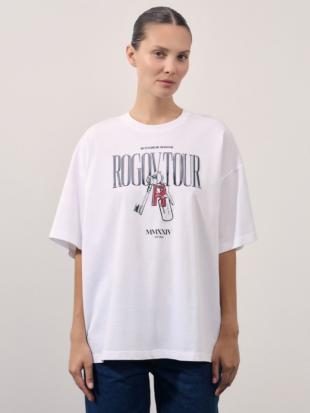 Оверсайз футболка с принтом из мерсеризованного хлопка / Zarina