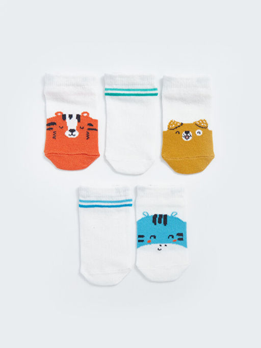 Bask?l? Erkek Bebek Patik ?orap 5li