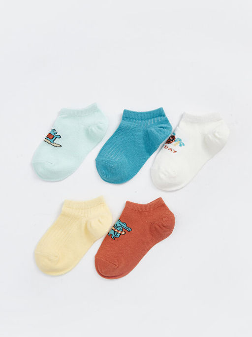 Bask?l? Erkek Bebek Patik ?orap 5li