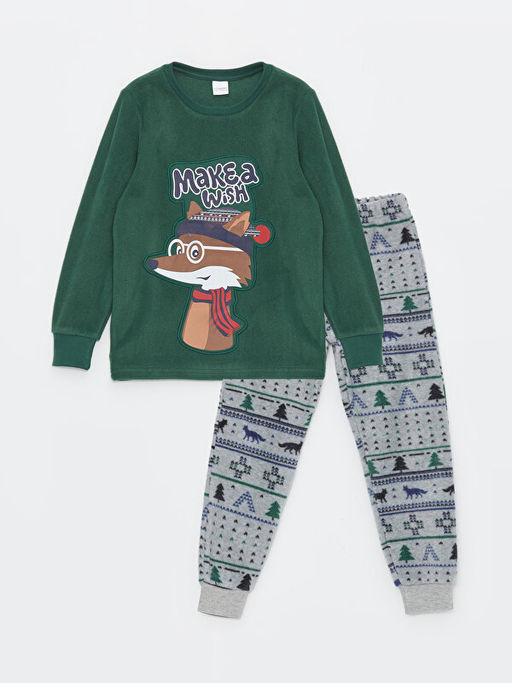Bisiklet Yaka Y?lba?? Temal? Uzun Kollu Polar Erkek ?ocuk Pijama Tak?m?