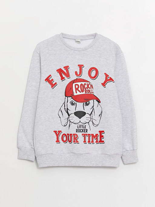 Rahat Kal?p Bisiklet Yaka Bask?l? Erkek ?ocuk Sweatshirt