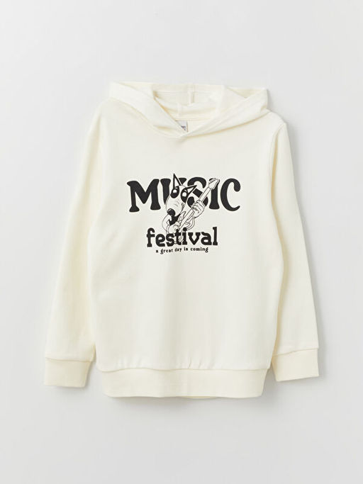 Kap??onlu Bask?l? Uzun Kollu Erkek ?ocuk Ti??rt