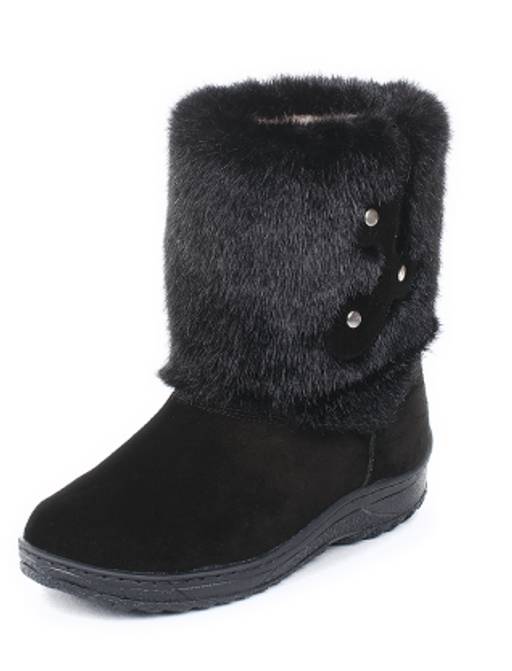 Унты женские на литой подошве. Черные. Мех "норка" черная. Короткие.