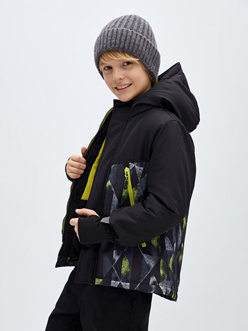Kap??onlu Desenli Erkek ?ocuk ?i?me Mont