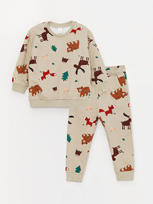 Bisiklet Yaka Uzun Kollu Bask?l? Erkek Bebek Sweatshirt ve Pantolon 2li Tak?m