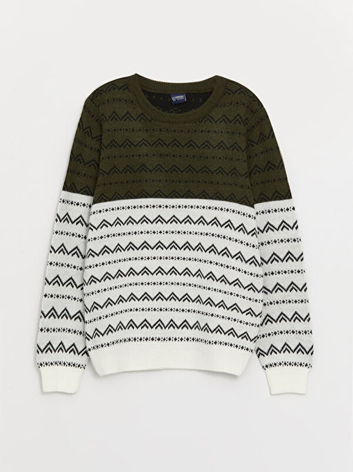 Bisiklet Yaka Desenli Uzun Kollu Erkek ?ocuk Triko Kazak