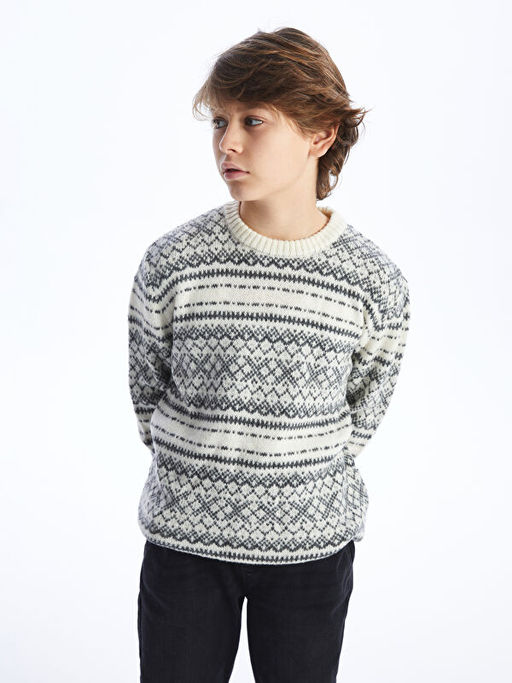 Bisiklet Yaka Desenli Uzun Kollu Erkek ?ocuk Triko Kazak