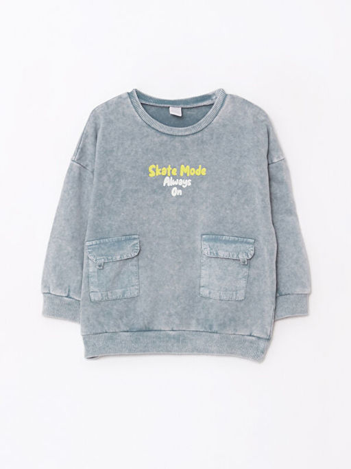 Bisiklet Yaka Uzun Kollu Bask?l? Erkek Bebek Sweatshirt