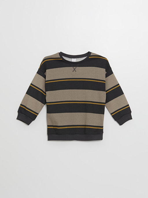 Bisiklet Yaka Uzun Kollu ?izgili Erkek Bebek Sweatshirt