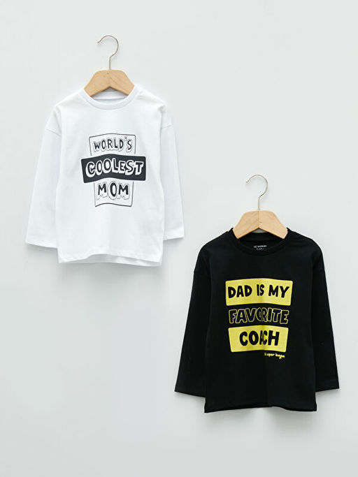 Bisiklet Yaka Uzun Kollu Bask?l? Pamuklu Erkek Bebek Ti??rt 2li