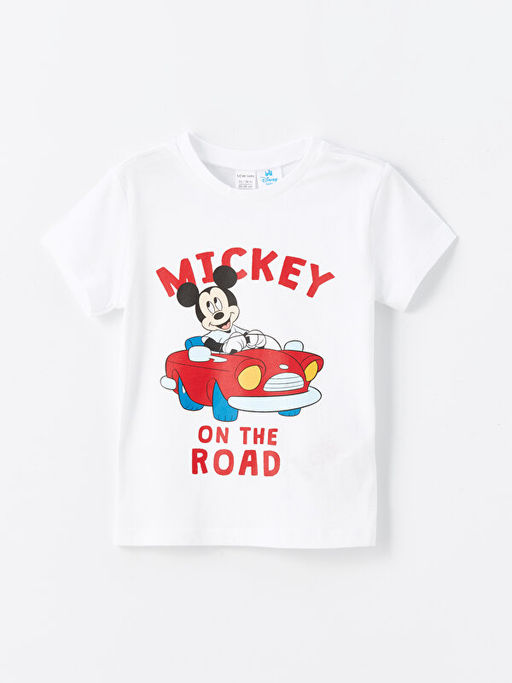 Bisiklet Yaka K?sa Kollu Mickey Mouse Bask?l? Erkek Bebek Ti??rt