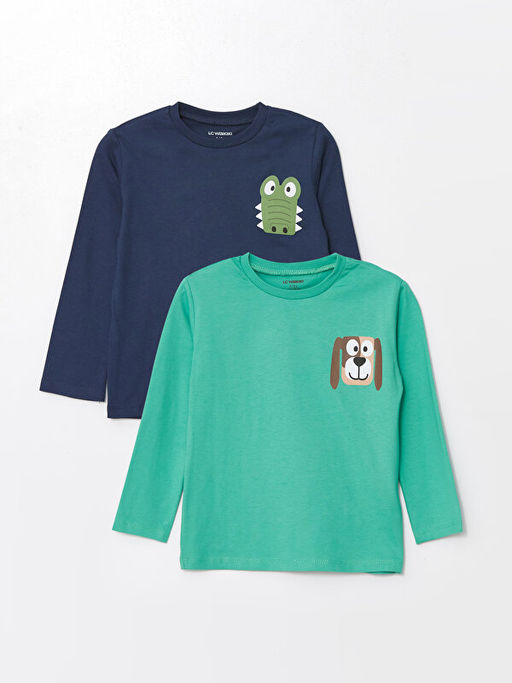 Bisiklet Yaka Uzun Kollu Bask?l? Erkek Bebek Ti??rt 2li