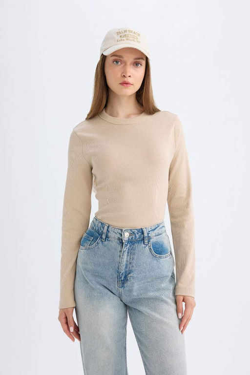 Туника-футболка с длинными рукавами и длинными рукавами в рубчик обычного кроя