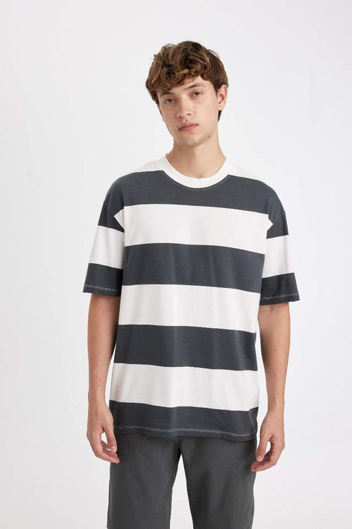 Полосатая футболка с короткими рукавами свободного покроя с круглым вырезом