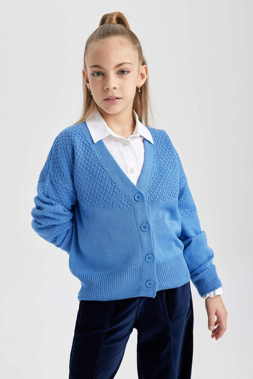 Трикотажный кардиган для девочек с V-образным вырезом