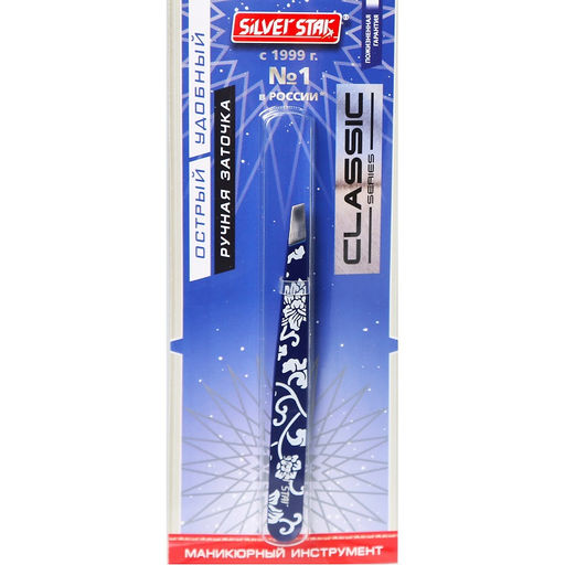 Пинцет для бровей скошенный ПИОНЫ Silver Star