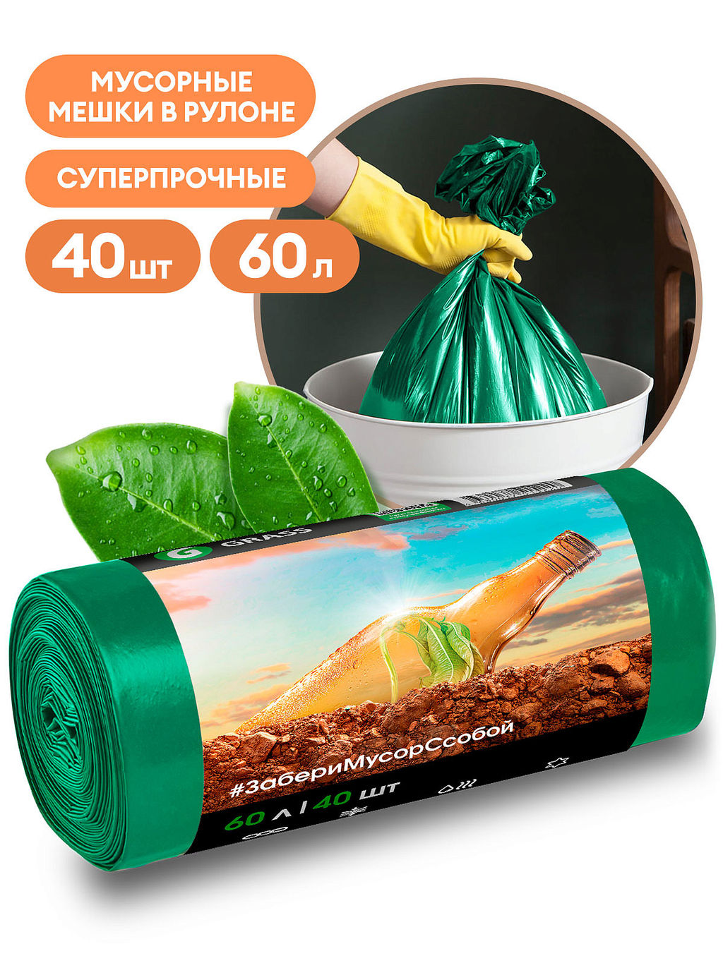 мешки для мусора 60л*40шт 13мкр ПНД рулон GRASS