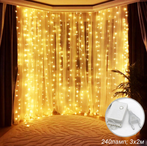 Гирлянда светодиодная Занавес 3х2 м, 240 LED 8 режимов / GN14 /уп 50/ теплый белый
