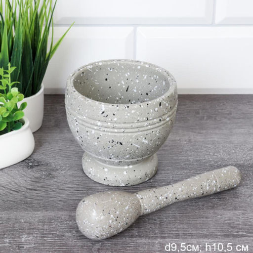 Ступка с пестиком 9,5х10,5 см пластик/ A061B /уп 90/серая