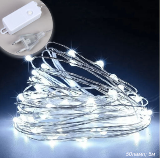 Гирлянда светодиодная нить 5 м 50 LED / GN28 /уп 200/холодный белыйВИЛКА