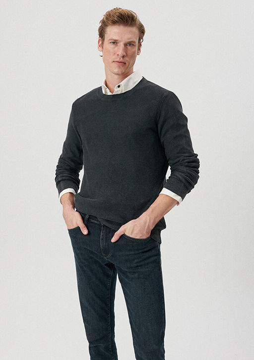 Gri Bisiklet Yaka Kazak