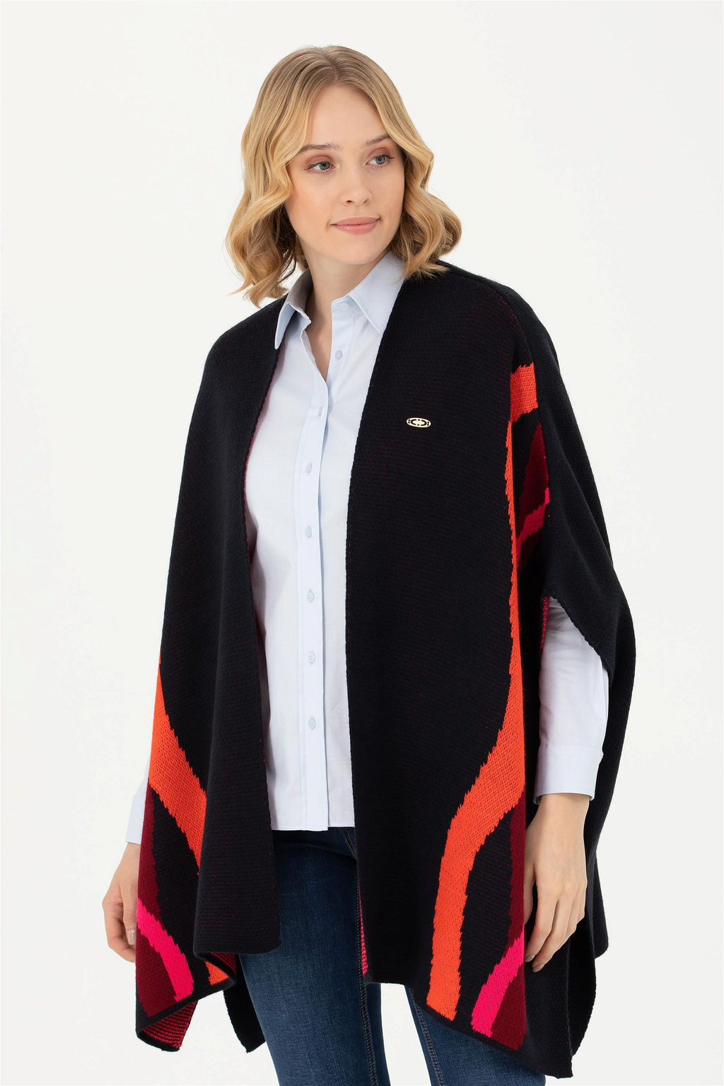 Женское темно-синее трикотажное пончо Неожиданная скидка в корзине