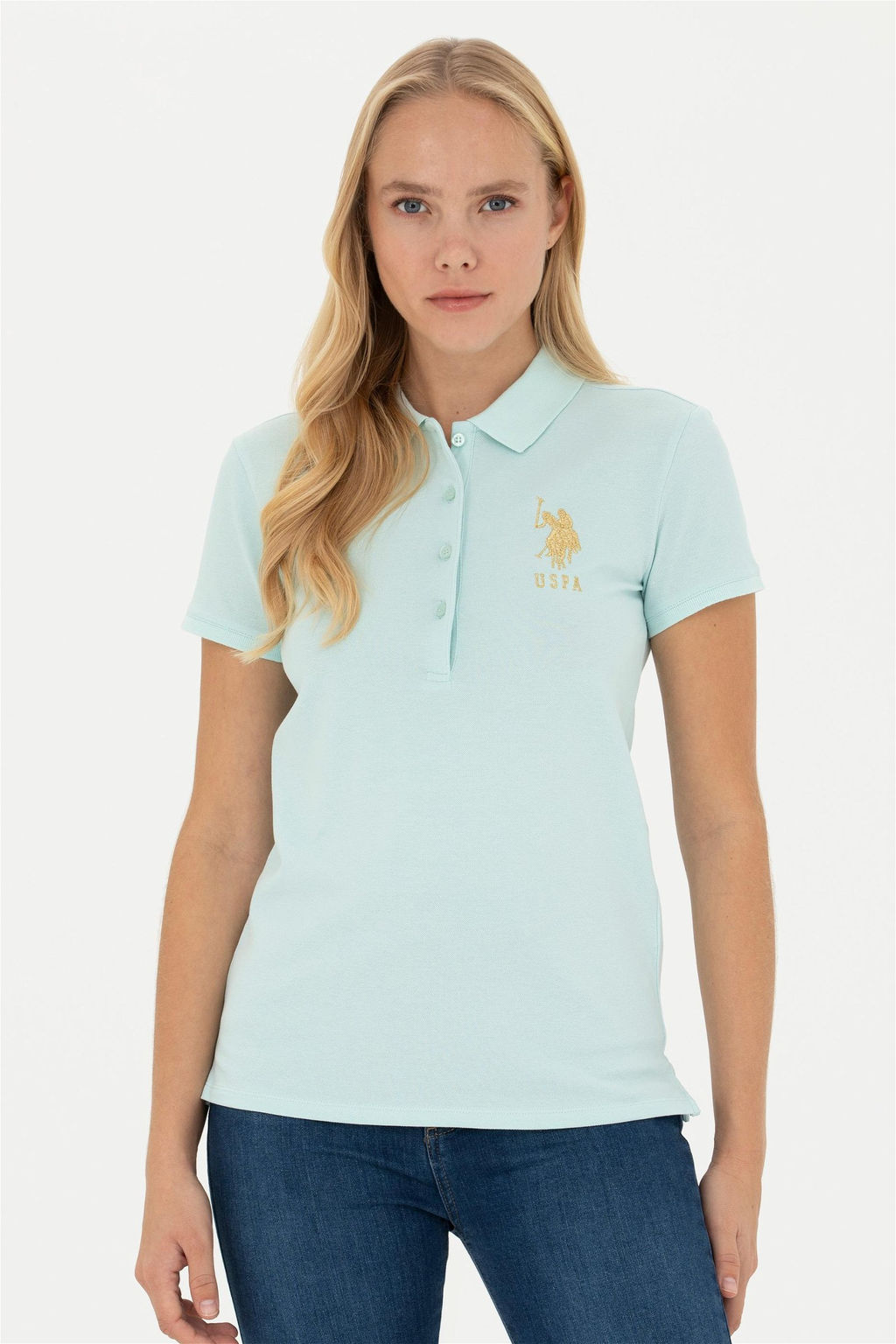 Женская базовая футболка цвета водного зеленого цвета с воротником-поло Неожиданная скидка в корзине