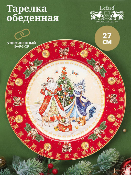 ТАРЕЛКА ОБЕДЕННАЯ LEFARD ДЕД МОРОЗ И СНЕГУРОЧКА 27 СМ КРАСНАЯ