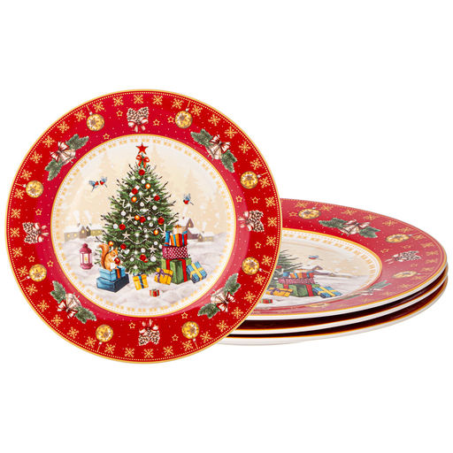 НАБОР ТАРЕЛОК ЗАКУСОЧНЫХ LEFARD ЕЛКА 4 ШТ. 20,5 СМ КРАСНЫЙ (КОР=6НАБ.)