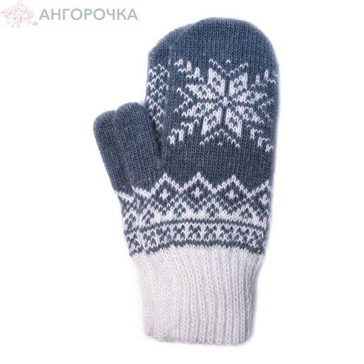 Серые шерстяные варежки с белой снежинкой - 305.126