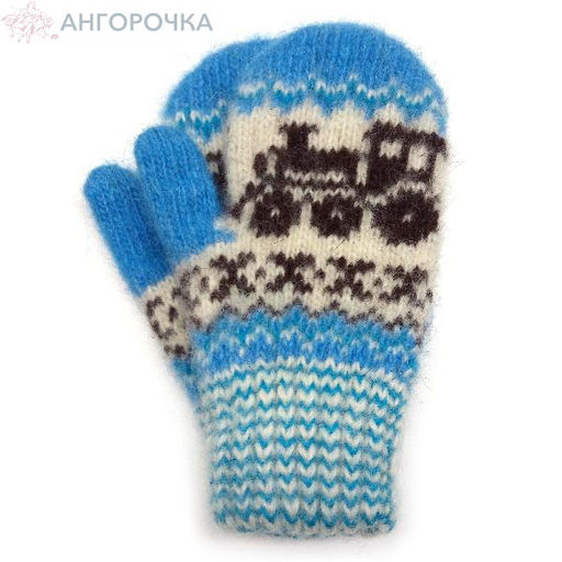 Детские шерстяные варежки с паравозиком - 342.8