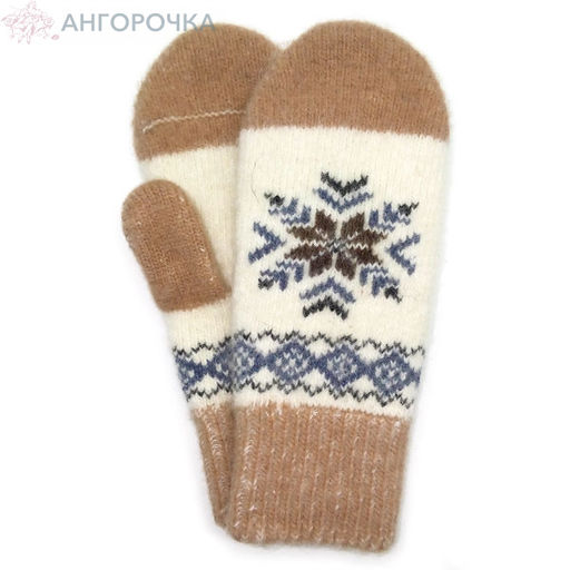 Двухцветные женские варежки со снежинкой - 305.169