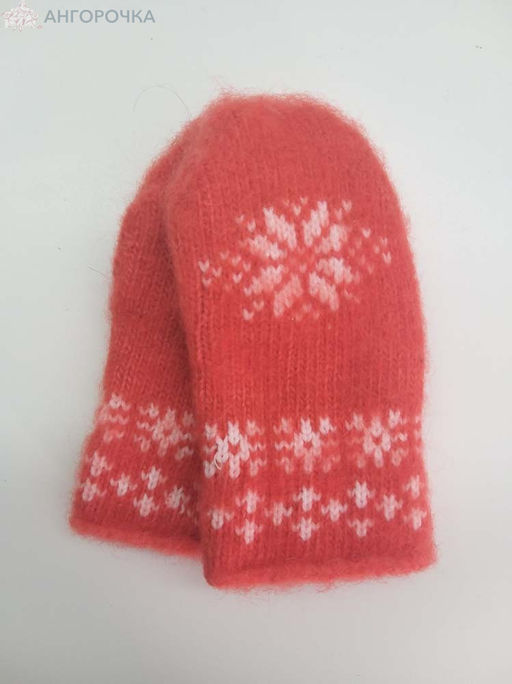 Варежки морковные детские с белым узором - 341.97