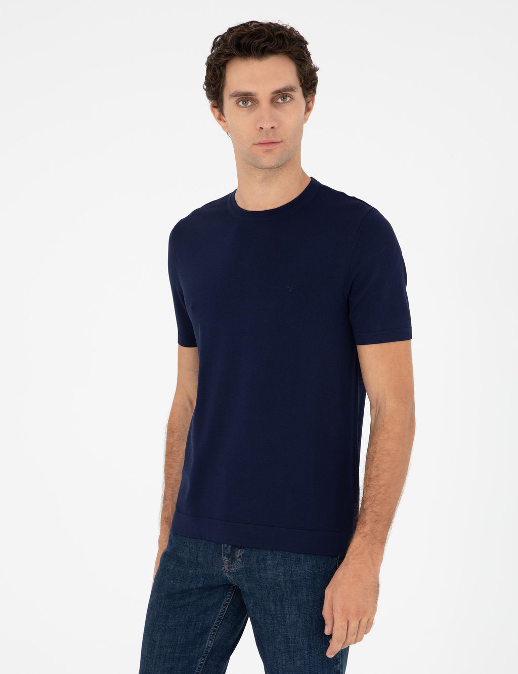 Темно-синий зауженный свитер