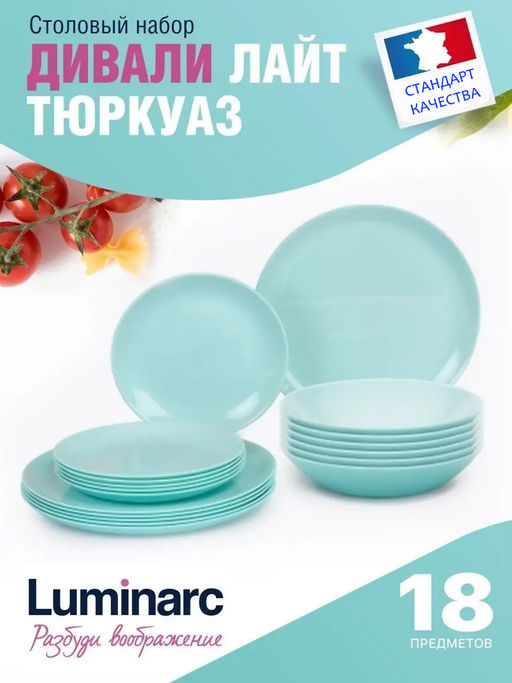 Набор столовый ДИВАЛИ ЛАЙТ ТЮРКУАЗ 18 предметов арт.P2963 /Люминарк/