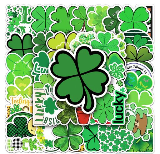 Набор наклеек/стикеров на ноутбук, телефон, компьютер 50 шт. Клевер удачи (2676)