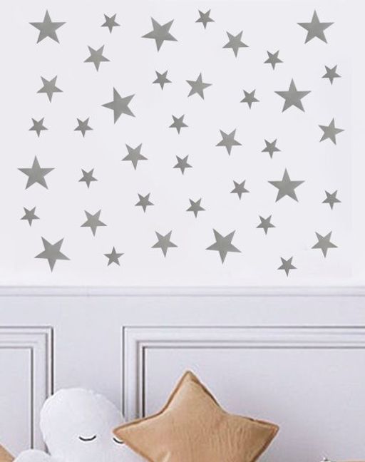 Набор многоразовых наклеек Звезды от 3 до 5 см (39 штук) Серебро (1913)