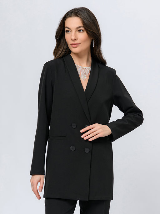 Жакет черного цвета с отложным воротником и длинными рукавами