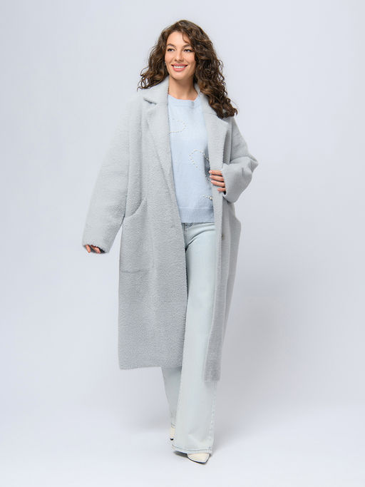 Кардиган удлиненный серого цвета с карманами и отложным воротником