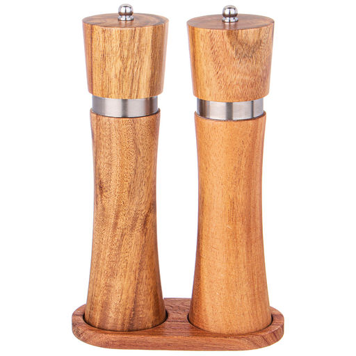 НАБОР МЕЛЬНИЦ ДЛЯ СПЕЦИЙ AGNESS ИЗ 2Х ШТ. НА ПОДСТАВКЕ АКАЦИЯ 14Х7Х21,5 СМ