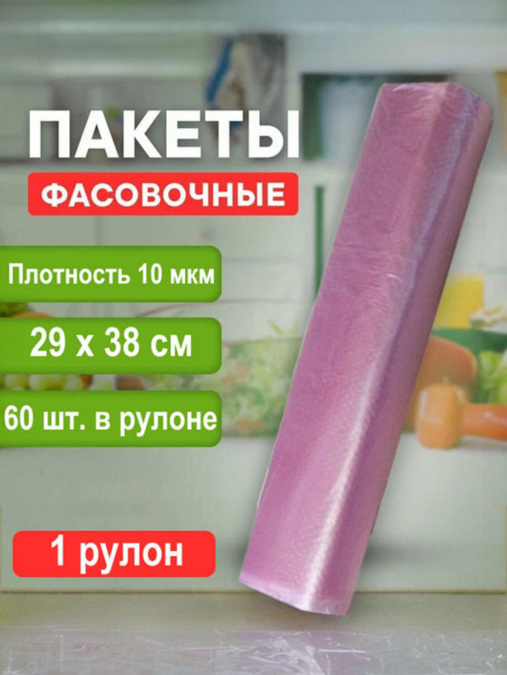 Пакет фасовочный (фасовка) рулон в ассортименте ПНД 29х38 10мкм 1рул/60шт.