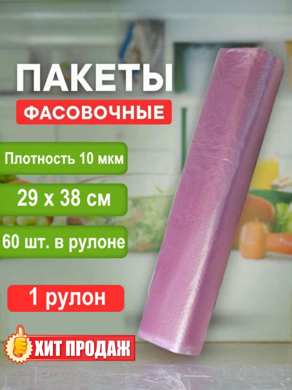 Пакет фасовочный (фасовка) рулон в ассортименте ф ПНД 29х38 10мкм 1рул/60шт.
