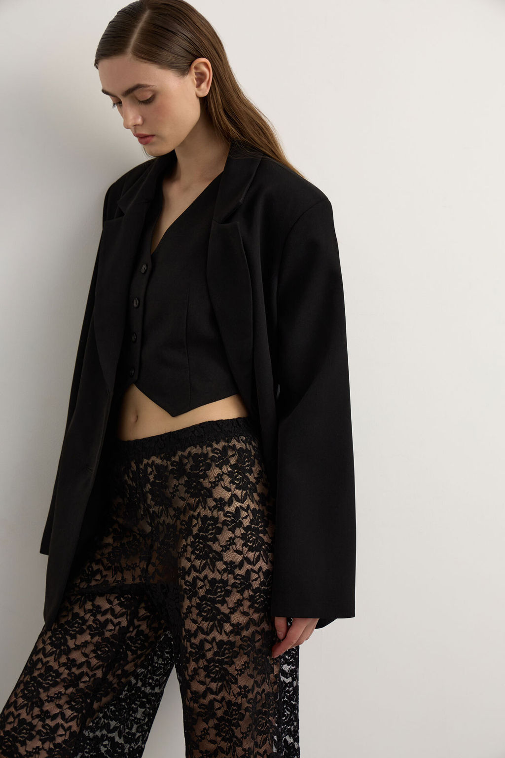 Брюки прямые из кружева