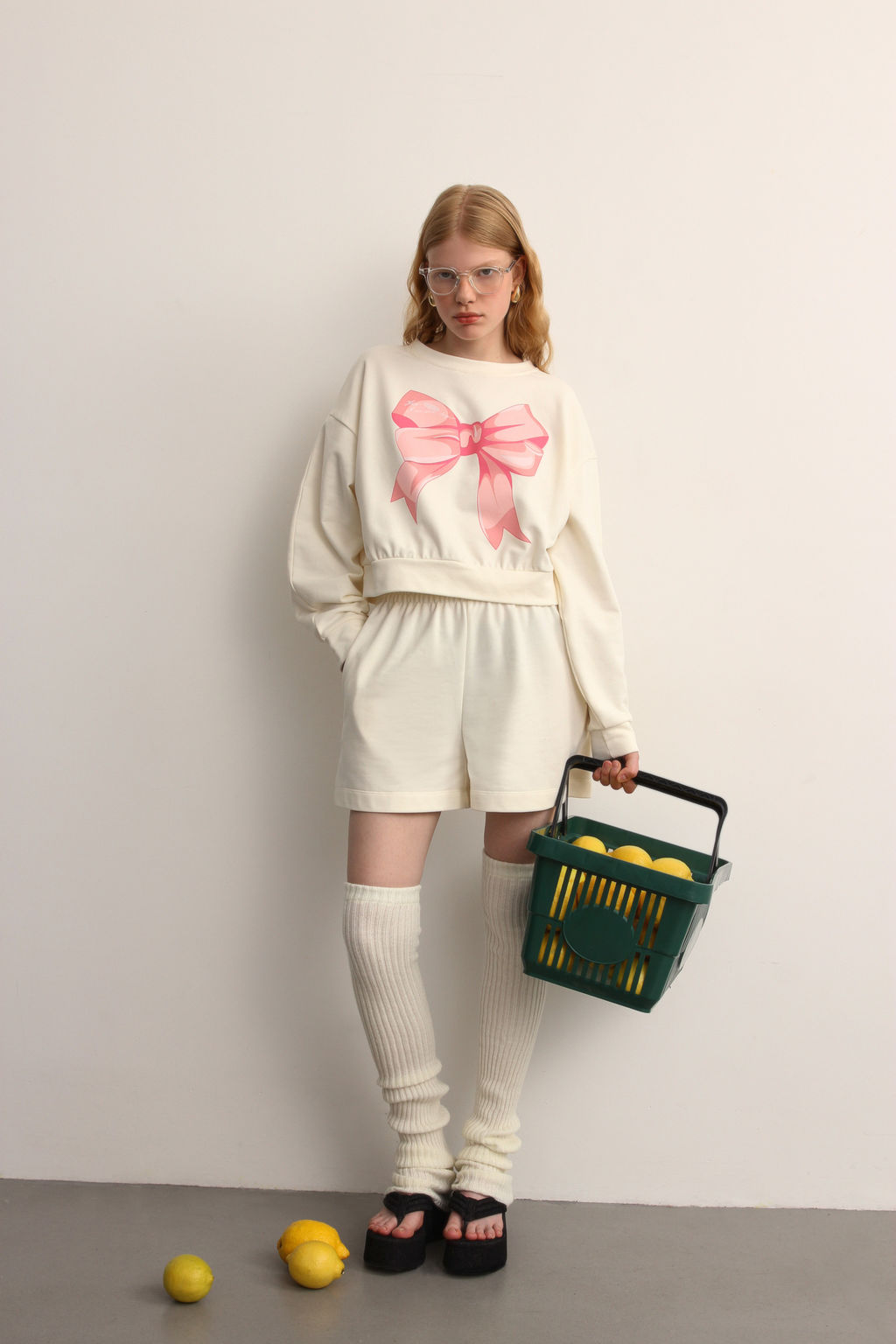 Свитшот укороченный с принтом "бант"