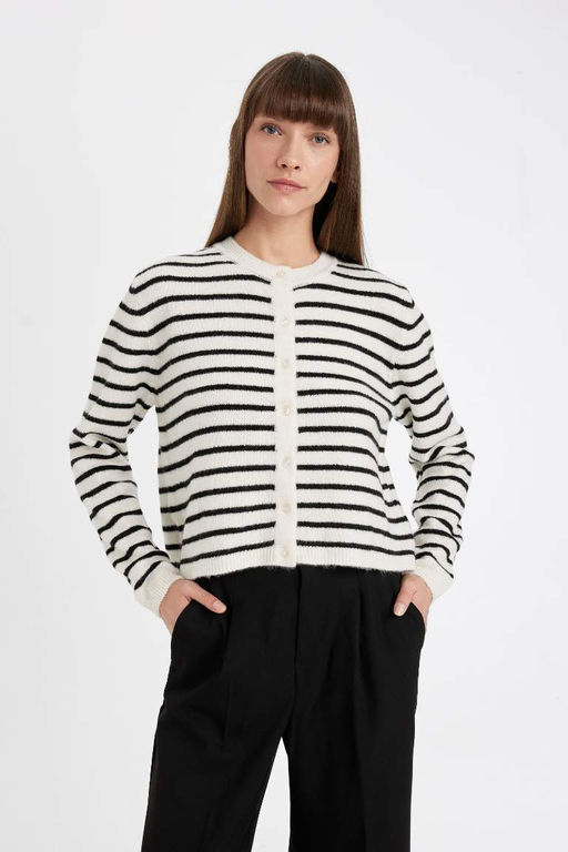 Полосатый кардиган стандартного кроя с круглым вырезом