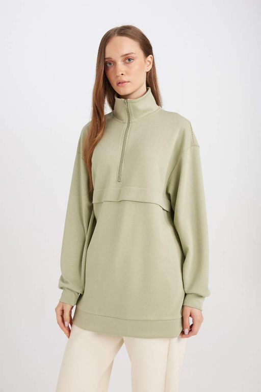 Толстовка-туника с высоким воротником и молнией стандартного кроя