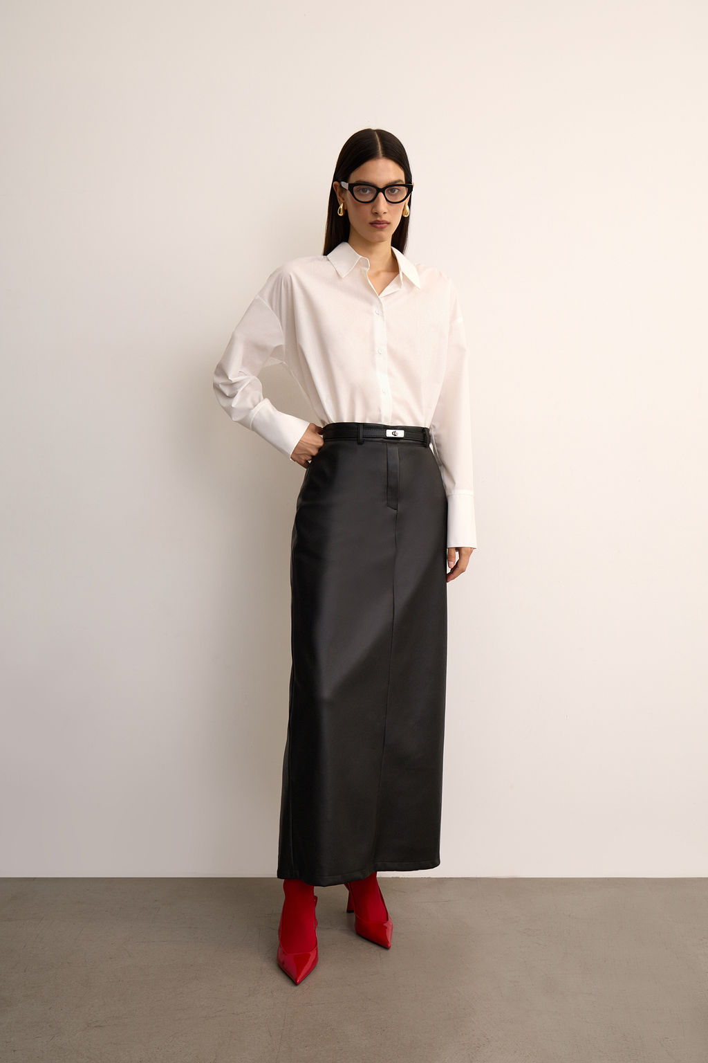 Юбка из экокожи прямого силуэта