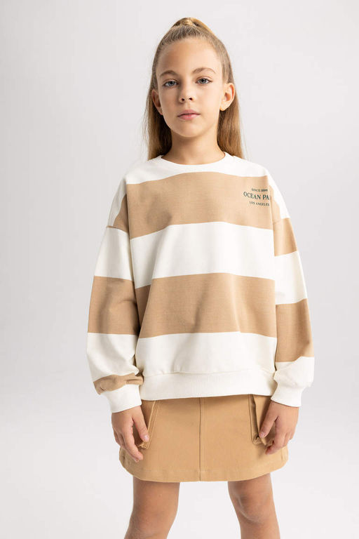 Полосатый свитшот оверсайз с круглым вырезом для девочек