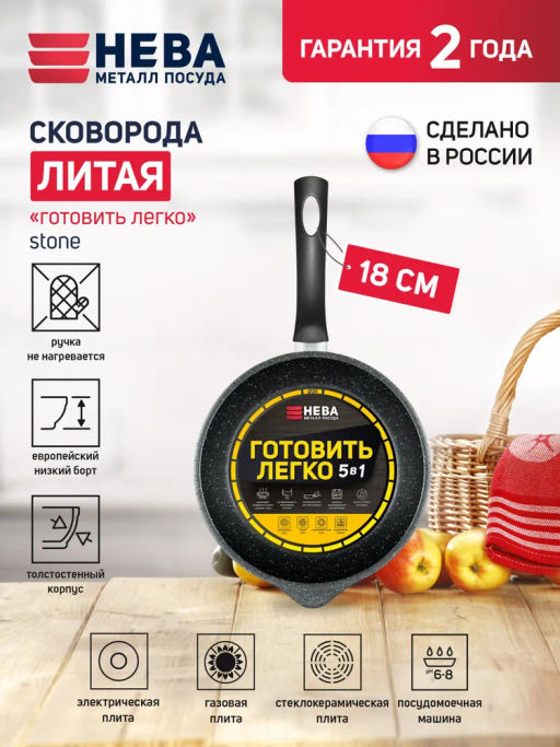Сковорода "Готовить легко" stone, несъемная ручка, 18 см